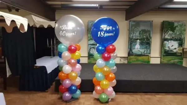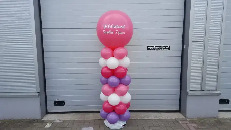 Deze ballonpilaar met eigen opdruk is leverbaar in verschillende soorten kleuren . Transport niet bij prijs inbegrepen.