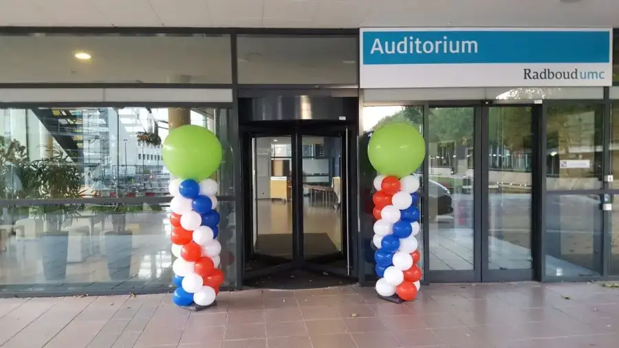 Hoogte ballonpilaar met topballon circa 2,20 mtr.