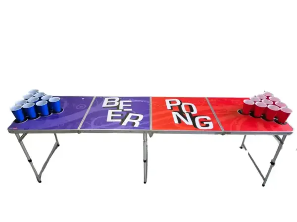 Afmeting Beerpong spel tafel: 2.40 x 0.60 x 070 cm (l x b x h) Ingeklapt 0.60 x 0.60 x 0.15cm. Het beerpong spel wordt geleverd met tafel bekers en ballen. Bekers en ballen mag u na afloop houden.