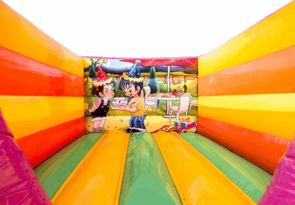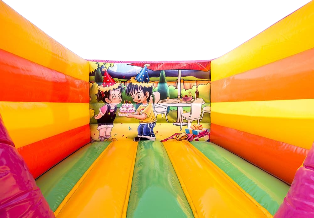 Het feest springkussen is een leuk onoverdekt kussen met opvallende kleuren en leuke feestplaatjes.