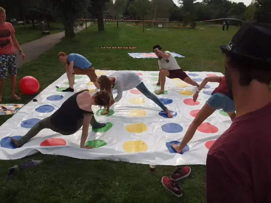 Deze reuze twistermat heeft een afmeting van 5 x 5 meter.