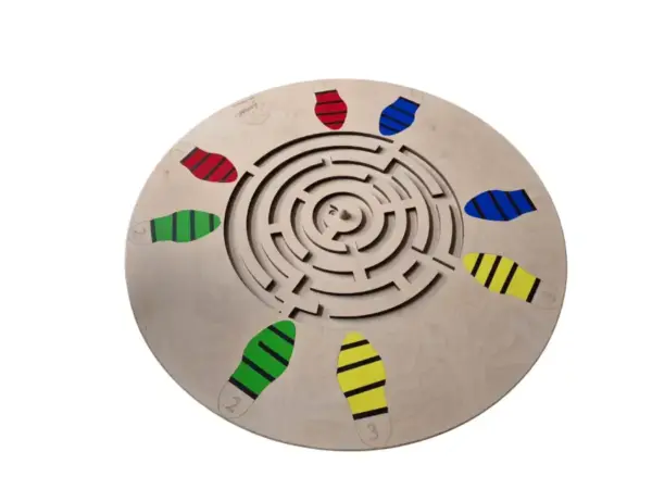 Uitleg XL Balance: Probeer de bal door het labyrint te loodsen door op het speelveld te gaan staan en zo te balanceren dat de bal het middelpunt bereikt. Je hebt gewonnen als jouw groep het snelst het balletje naar het middelpunt heeft weten te loodsen.